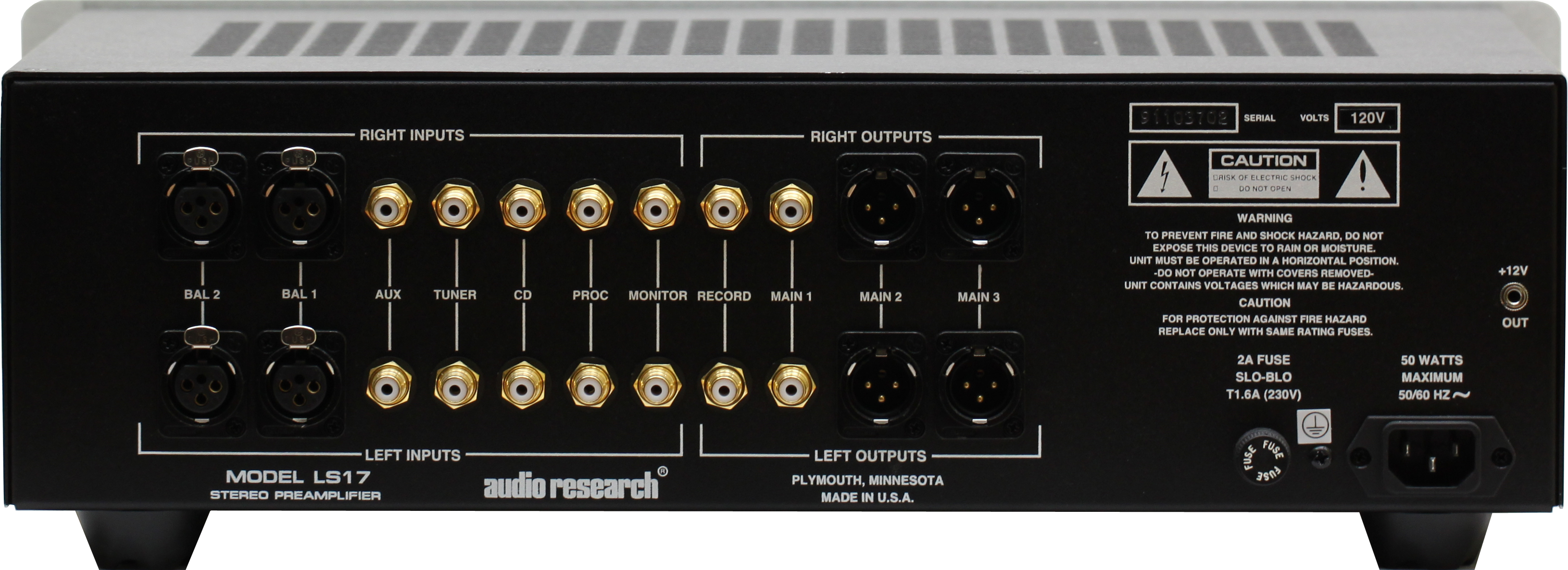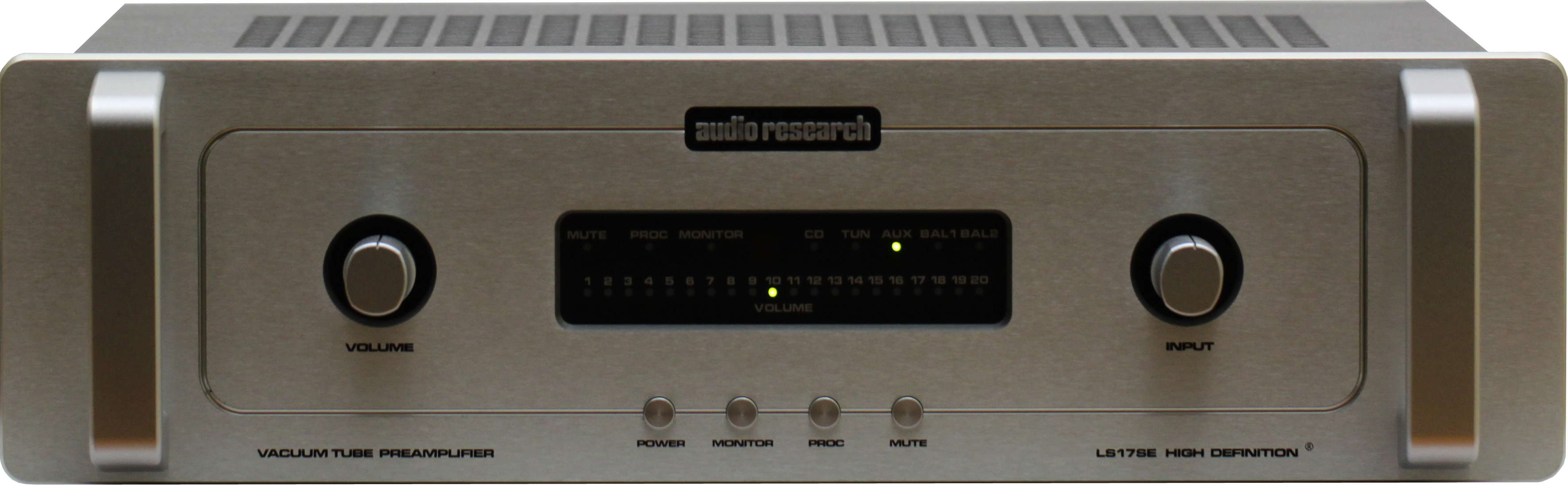 The LS17 SE is the entry-level model in Audio Research’s quartet of line stages, its bigger brothers being the LS27, the Reference 5 SE, and the recently introduced two-chassis Reference 10. It has two pairs of balanced inputs and four pairs of single-ended inputs, and two pairs of balanced outputs and one pair of single-ended outputs (there are also a set of single-ended record and monitor inputs and outputs). One pair of single-ended inputs is a unity gain home theatre bypass, labelled Proc. This allows the LS17 SE to be used in systems that are both stereo and multichannel; in the latter, the front left and right channel outputs from one’s surround sound processor would be connected to the LS17 SE’s Proc inputs with the former controlling the volume level.